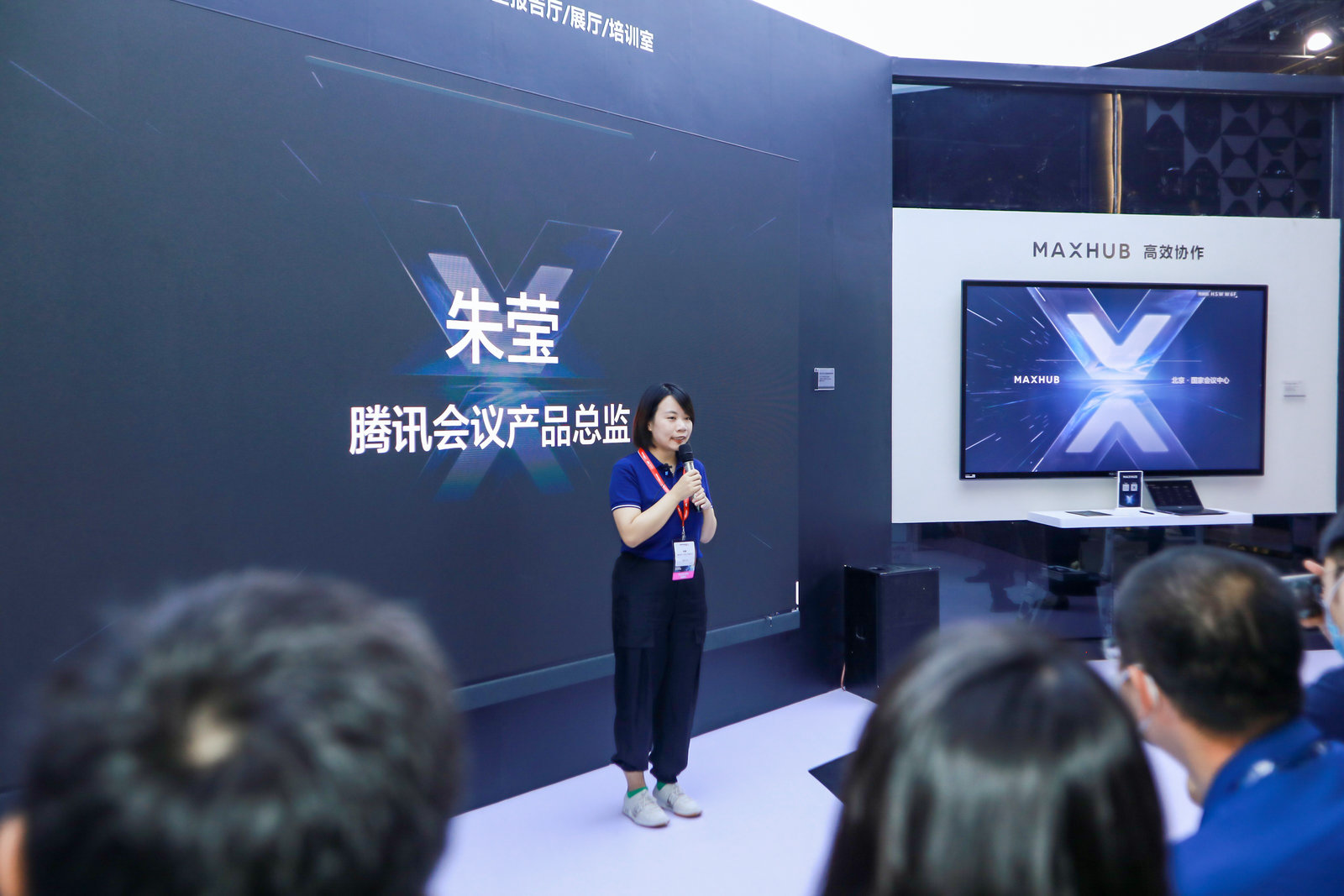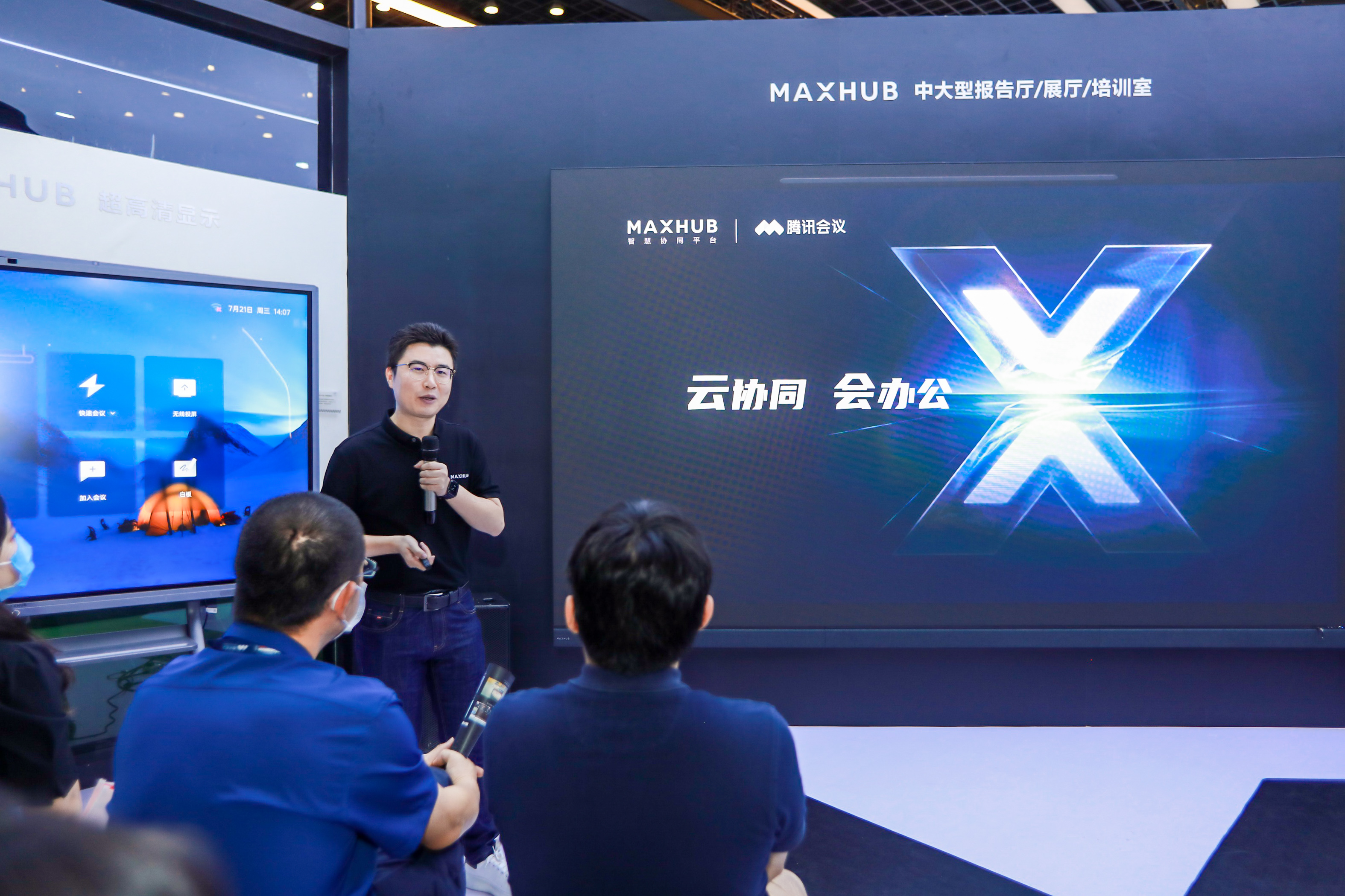 首发仪式上,MAXHUB产品总监张金成和腾讯会议产品策划总监朱莹共同出席本次活动,不少科技媒体和各行各业的企业人士纷纷前来围观,MAXHUB展台一举揽获超高人气。