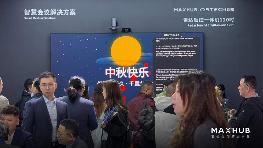 展会现场,MAXHUB 带来的解决方案同样瞩目。智慧会议解决方案聚焦中大型会议场景,依托领效智会大模型与MAXHUB LED一体机、无线全向麦BM51的协同创新,展示AI实时字幕、雷达触控、智能降噪等亮点功能,实现从“工具赋能”到“决策协同”的创新升级。
